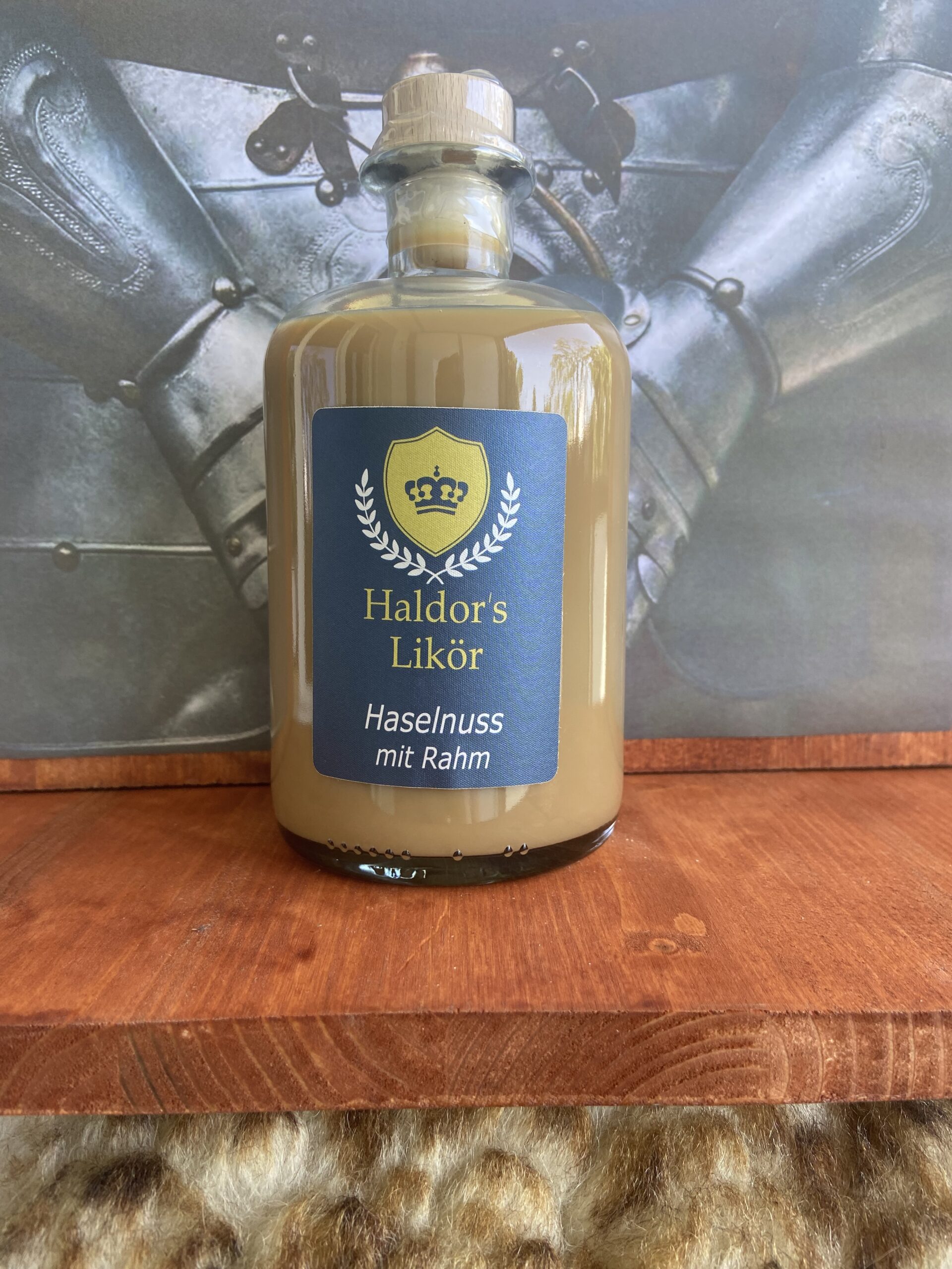 Der Likör besteht aus: Haselnusscreme,Rahm, Zucker und Rum